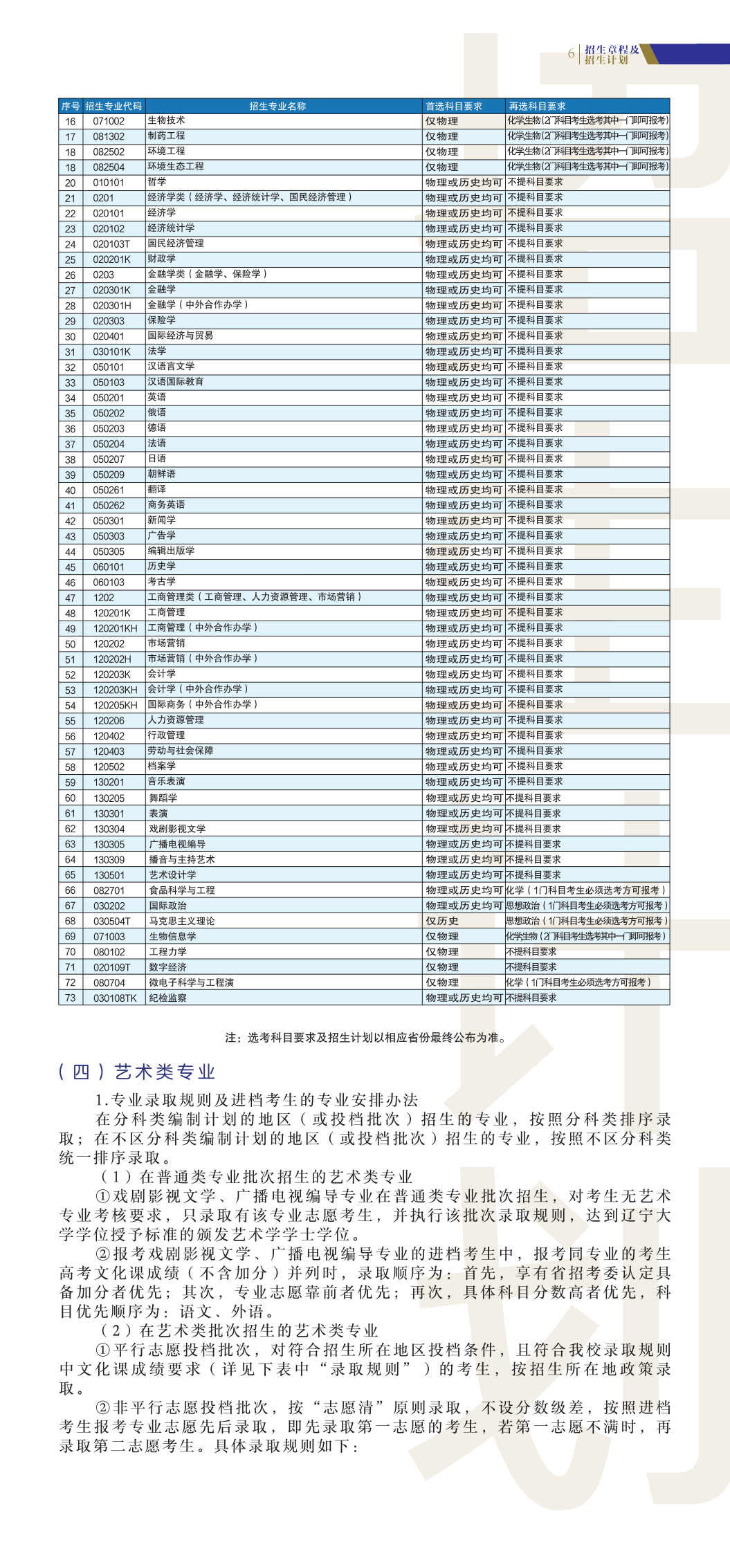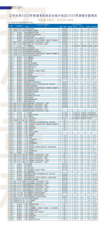 辽宁大学2023年本科招生章程及招生计划