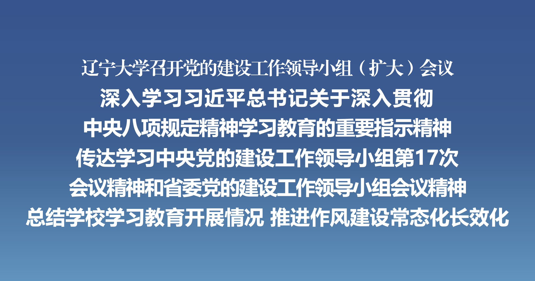 9月12日,辽宁大学召开党的建设工作领导小组(扩大)会议暨深入贯彻中央八项规定精神学习教育总结会议,深入学习习近平总书记关于深入贯彻中央八项规定精神学习教育的重要指示精神,传达学习中央党的建设工作领导小组第17次会议精神和省委党的建设工作领导小组会议精神,总结学校学习教育开展情况,研究部署巩固拓展学习教育成果、锲而不舍落实中央八项规定精神、推进作风建设常态化长效化工作。校党委书记、党的建设工作领导小组组长潘一山主持会议并讲话。