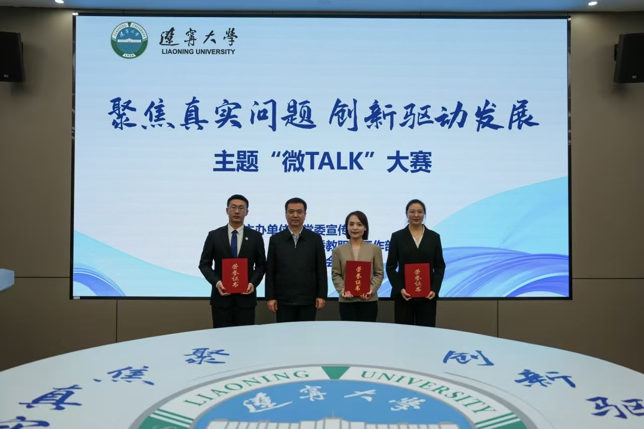 11月20日,由党委宣传部、党委教职工工作部、校工会主办的“聚焦真实问题,创新驱动发展”主题“微TALK”大赛在蒲河校区校部办公楼401会议室举行。校党委副书记张洪新出席活动并颁奖。